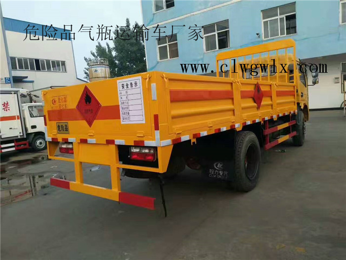東風(fēng)欄板氣瓶運(yùn)輸車 底盤配置:選用東風(fēng)國五專用危險品底盤,東風(fēng)L系寬體單排可前翻駕駛室,搭載朝柴156馬力柴油發(fā)動機(jī),3308軸距,五檔箱,7.50-R16鋼絲輪胎,斷氣剎,方向助力,斷氣制動,原廠前盤式制動,ABS,限速裝置,排氣管前置并帶火花熄滅器,黃牌。燃油公告、環(huán)保公告已下達(dá),上戶無憂。 上裝配置:整車外形尺寸(mm):5995×2150×2470,箱體尺寸(mm):4170×2050×400,箱體采用廂式欄板車結(jié)構(gòu),外厚度為1.1毫米厚度武鋼冷軋鋼板沖壓成瓦楞板,內(nèi)加強(qiáng)“幾”字型加強(qiáng)梁,車體底板加強(qiáng)處理并做防靜電處理。車體的左側(cè)、右側(cè),和后欄板栓鉤結(jié)構(gòu),可向下打開,方便上下貨物,車體為空曠式車型,大大減少了運(yùn)輸物品因為狹窄空和強(qiáng)烈碰撞產(chǎn)生氣瓶爆炸的危險性,箱體外觀涂裝白色油漆,在欄板的中間位置粘貼橙色的;嚇(biāo)帶,并在車體的左、右、后部粘貼“易燃?xì)怏w”或“不燃?xì)怏w”標(biāo)識。駕駛室內(nèi)部配備兩只滅火器,后保險杠處安裝防追尾事故的緩沖固定塊。此款車輛屬于國家規(guī)定的危險品二類廂式運(yùn)輸車。 | ||||